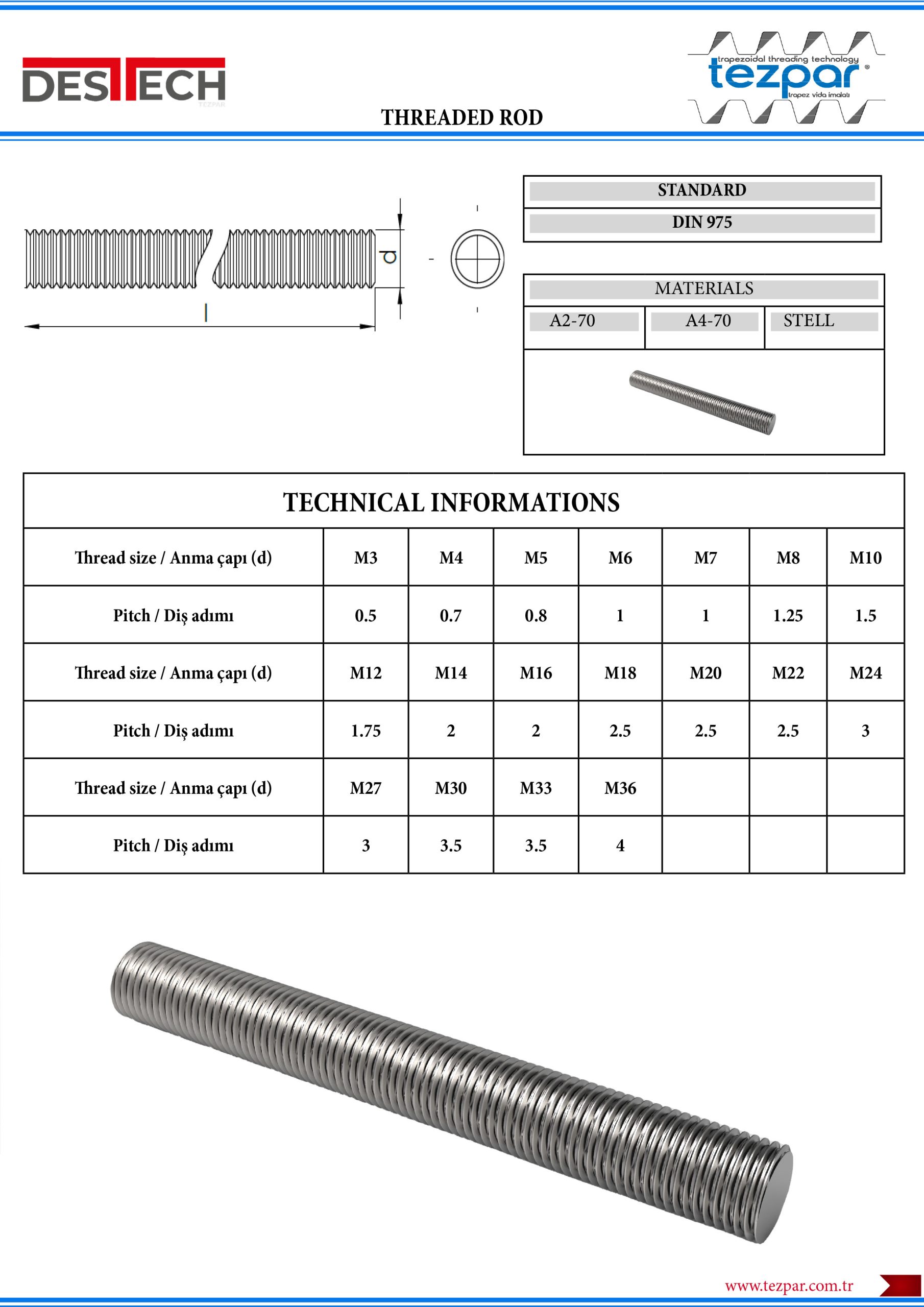 Stud Bolt is a headless screw with a threaded shank from both ends. It is used in connecting elements. It is placed in the main part body so that it remains fixed. Then, it is tightened with nuts by attaching it to the part to be connected. Studs with threads on both ends are produced by checking with standard gauges in accordance with the Stud Bolt Standards Communiqué.